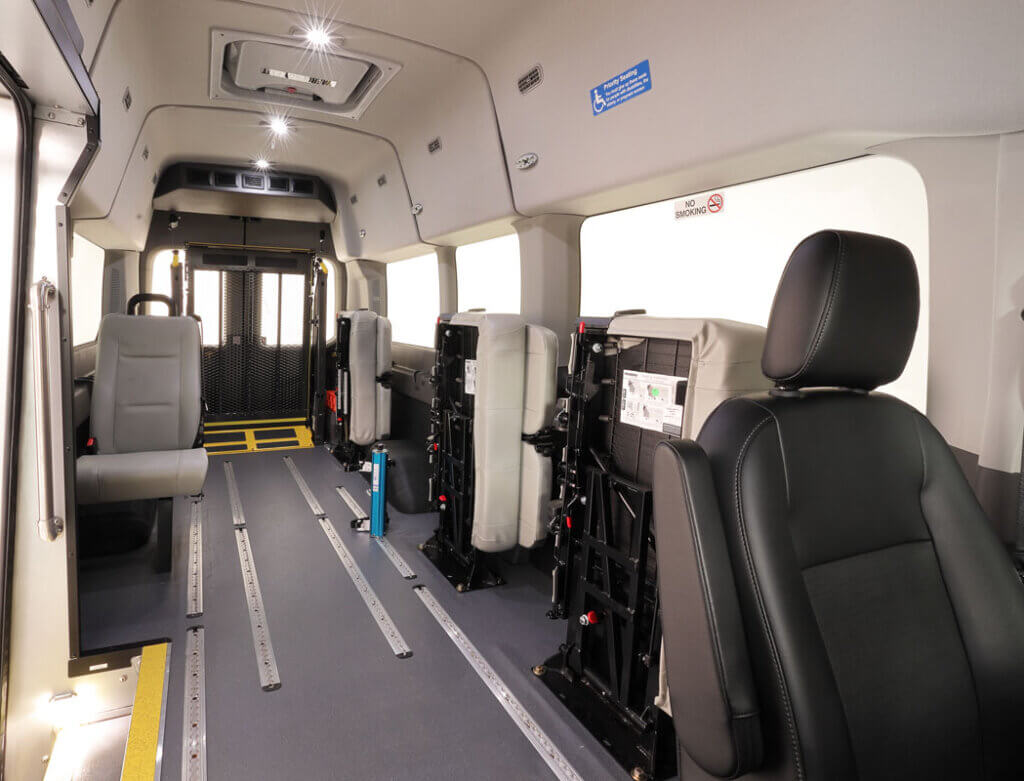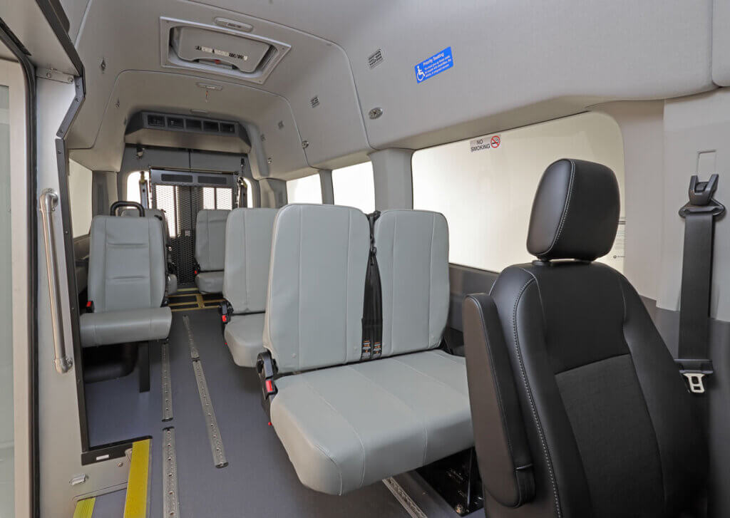 - 14 and 15-passenger seating layouts including driver – or up to 3 wheelchairs