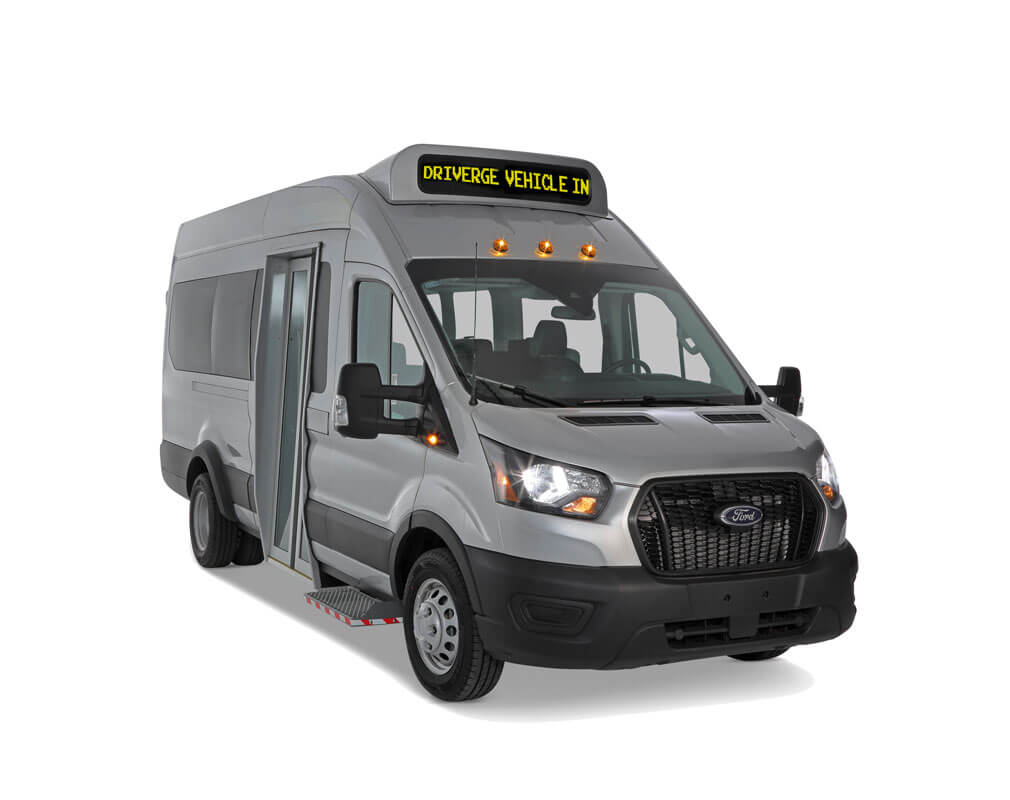 The Driverge Ford Transit Minibus provides companies with the ability to transport up to 15 passengers (including driver). Easier to operate and less expensive to maintain than a traditional cutaway, our Ford Transit mini bus provides significant fuel savings. It's perfect for corporate shuttles, community centers, group outings, charter & tour operators, and any other business that moves people. Combined with our innovative SmartFloor technology, the Ford Transit Minibus can also provide flexible seating opportunities, including options for a rear wheelchair lift and multiple wheelchair passengers.